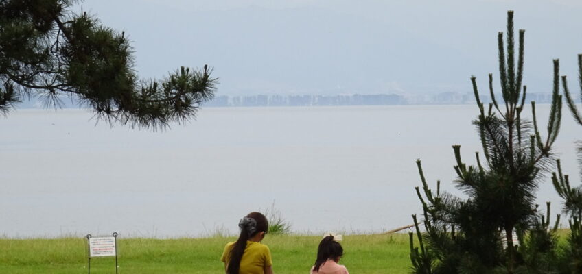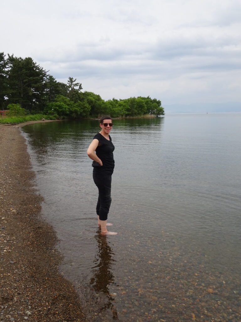 Danach fahren wir zum nahegelegenen Biwa See, kühlen die heissen Füsse ab und geniessen den Ausblick.
