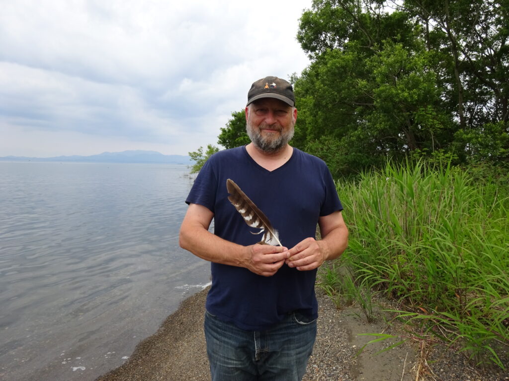Wir geniessen zusammen mit unserem Haus-Hund die Morgensonne auf der Veranda. Für heute haben wir einen Ausflug zum Biwa See geplant. Bald fahren wir los und werden von unseren Gastgebern inkl. Taube, Ente und Hund verabschiedet.