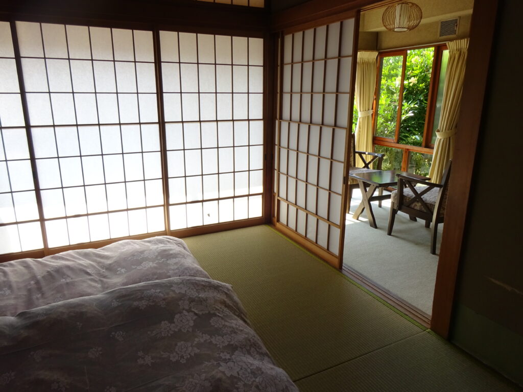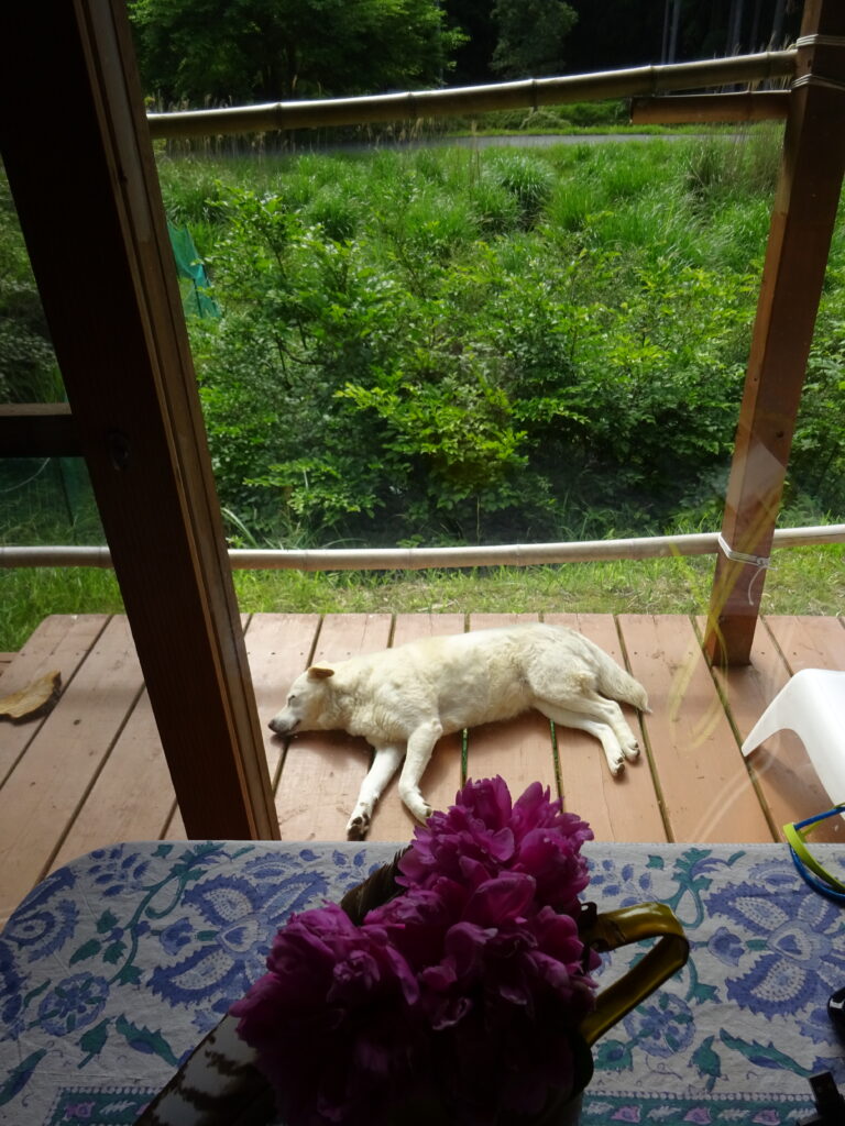 Wir werden vom Sonnenschein geweckt und kaum öffnen wir die Schiebetüre, begrüsst uns auch schon unser Haus-Hund. Heute brechen wir auf nach Miyazu am Meer.