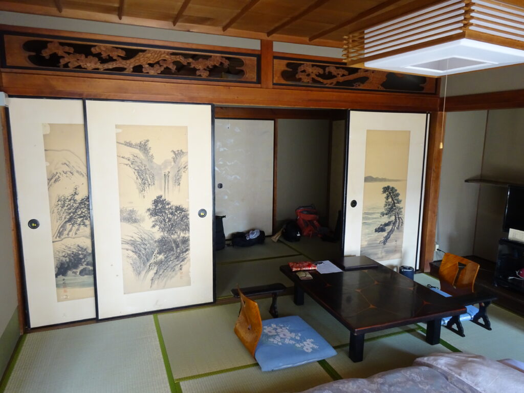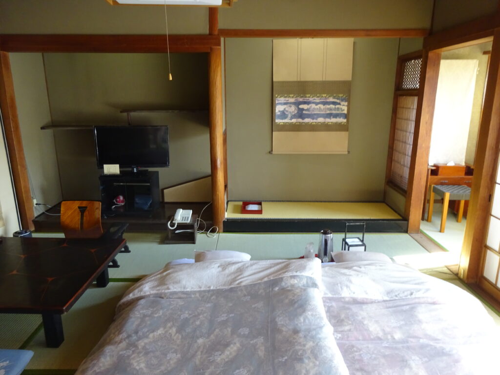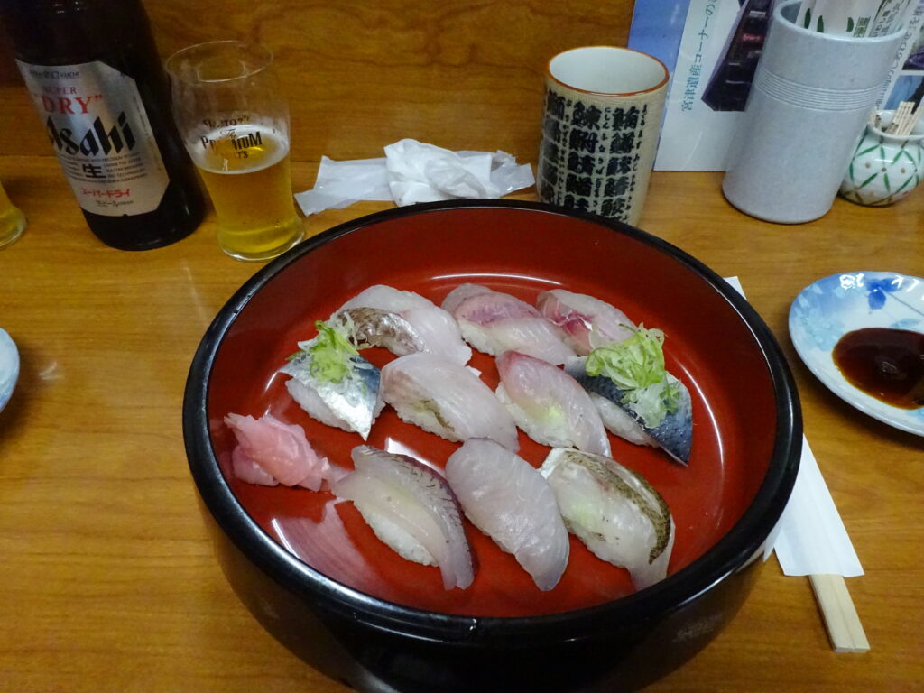 In Miyazu beziehen wir unser Zimmer in einem traditionellen Ryokan mit Tatamiboden und einem Futon als Bett. Dann machen wir uns auf, das Städtchen zu erkundigen. Wir treffen auf zwei Touris (Kelly und Chris aus Sydney) und sie empfehlen uns ein kleines Sushi Restaurant. Da gehen wir dann auch hin und treffen zugleich auch den Fischer, der die Fische für die Sushi gefangen hat.