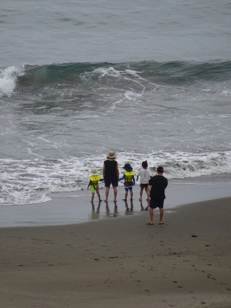 Unser letzter Tag in Kawazu an der Imaihama Beach bringt morgens hohe Wellen und noch etwas Regen. Das Baden macht bei diesem Wetter viel Spass – Bodysurfen ist angesagt 😉