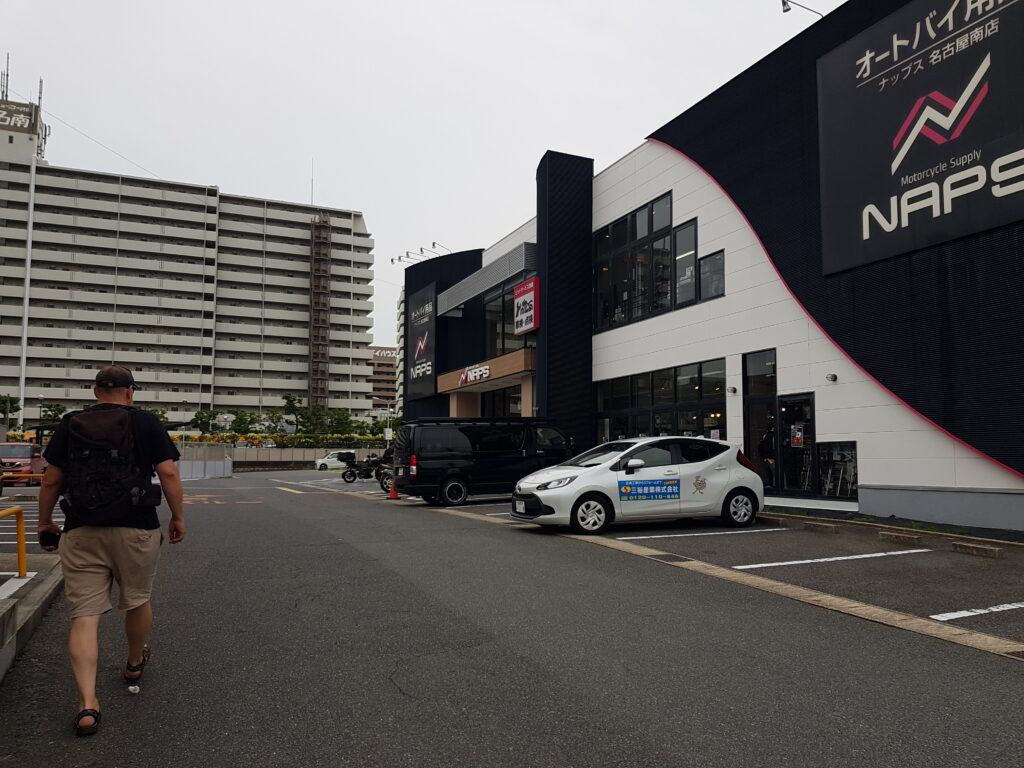 Eine kleine Stärkung mit Spaghetti und Sandwich und es geht weiter: Jetzt zu Naps Motorradladen etwas ausserhalb des Zentrums. Dort gibt es neben Motorradbekleidung auch viele Ersatzteile vom Pneu bis zu Bremskabeln in verschiedenen Längen. Wirklich cooler Laden. Ich kauf mir Gummiüberstülper für die Schuhe (bei Regen) und ein kleines Täschchen made in Kyoto für die nächste Motorradfahrt in der Schweiz.
