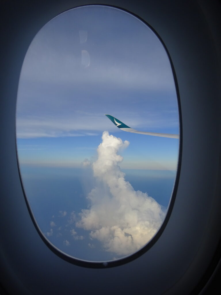 Unser Cathay Pacific Flug ist leicht verspätet, ansonsten läuft auch hier alles wie am Schnürchen und wir landen schon bald wieder am Flughafen von Hong Kong. Dieses Mal geht es noch nicht direkt weiter, denn wir haben einen kurzen Stopover eingeschoben und fliegen erst morgen um Mitternacht ab.