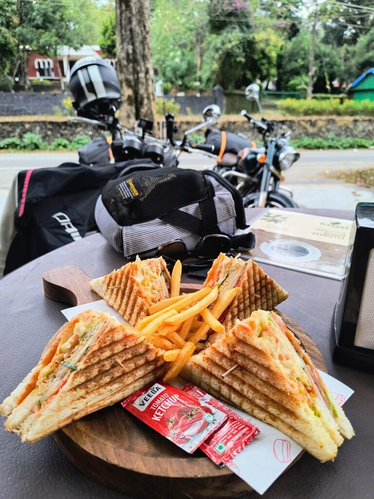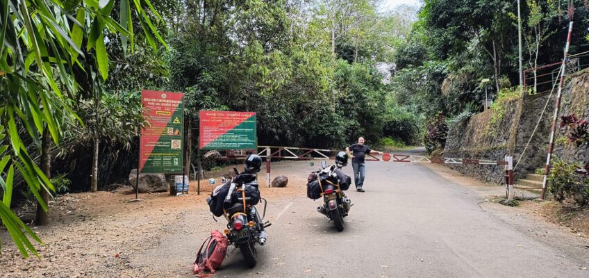 In Kumily ist ziemlich was los und wir finden unser Hotel nicht im ersten Anlauf. Doch bald stehen wir vor dem Bamboo Creek Hotel und können einchecken. Wir erhalten ein super schönes Zimmer, unsere beiden Enfield Ladies bekommen einen schönen Parkplatz und wir sind glücklich.