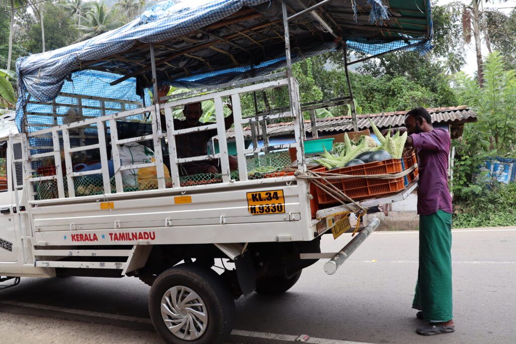 Wir haben in Konni gut geschlafen und machen uns am Morgen gleich auf die Weiterfahrt nach Kumily in den Hügeln von Kerala (Westghat Gebirge). Am Strassenrand trinken wir unseren Chai mit einer kleinen frittierten Zmorgen-Leckerei. Wir kaufen im Supermarkt noch einige Snacks ein und sind natürlich die Hauptattraktion: „Where are you from?“, „How long will you stay in India?“ – mit Händen und Füssen und etwas Englisch kann man sich gut unterhalten.