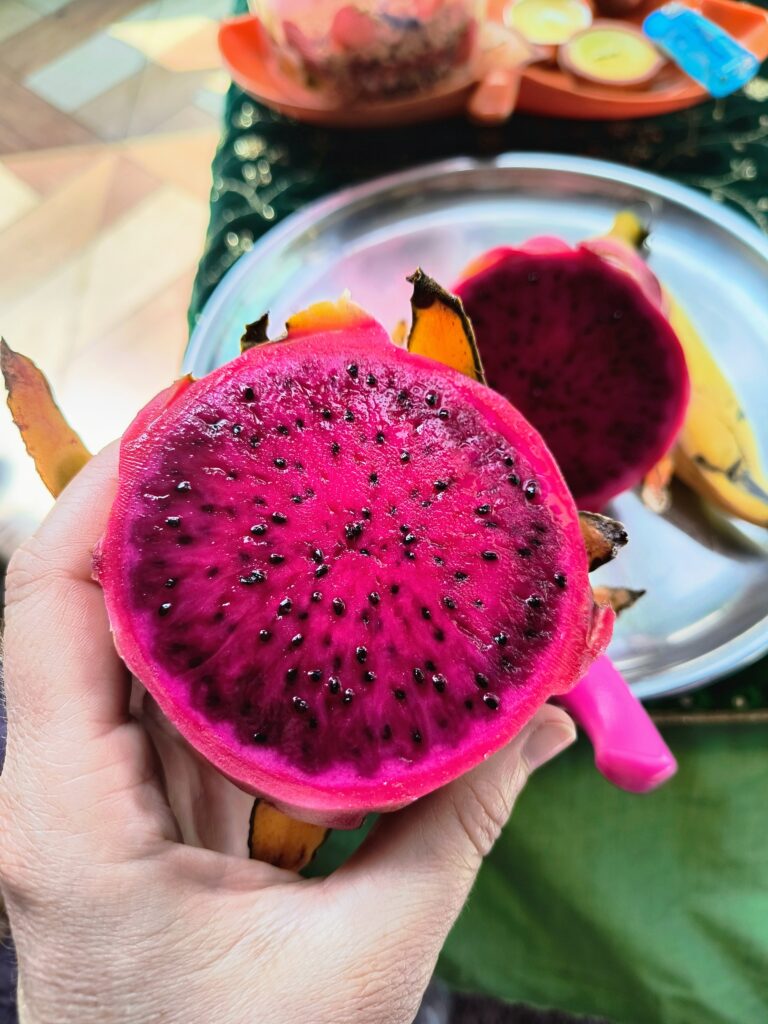 Ausser Essen, Lesen, Schlafen, Schwimmen, Reden und Essen haben wir heute nicht viel gemacht. Hyacinth und ihre zwei Köchinnen verwöhnen uns mit dem feinsten Essen. Zum Frühstück gibt es eine Auswahl an Früchten z.B. eine rote Drachenfrucht = sehr fein! Zum Znacht gab es frische Krabben und eine grosse Auswahl an guten Sachen.