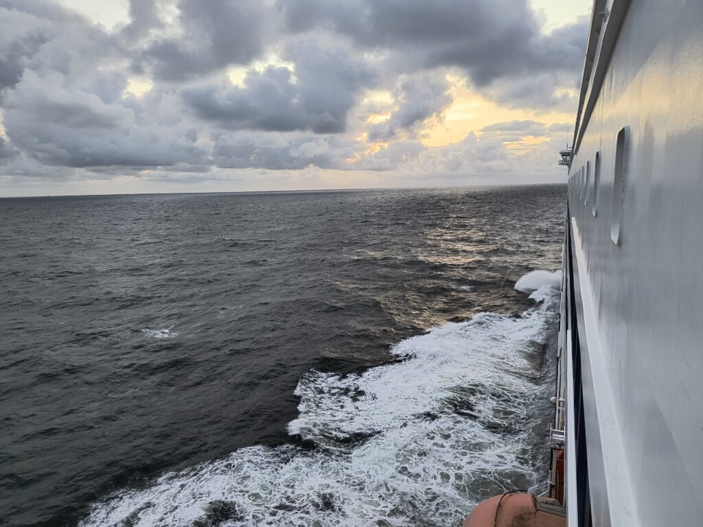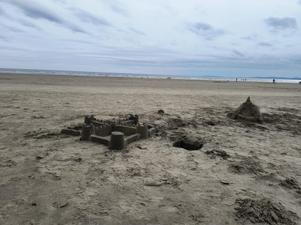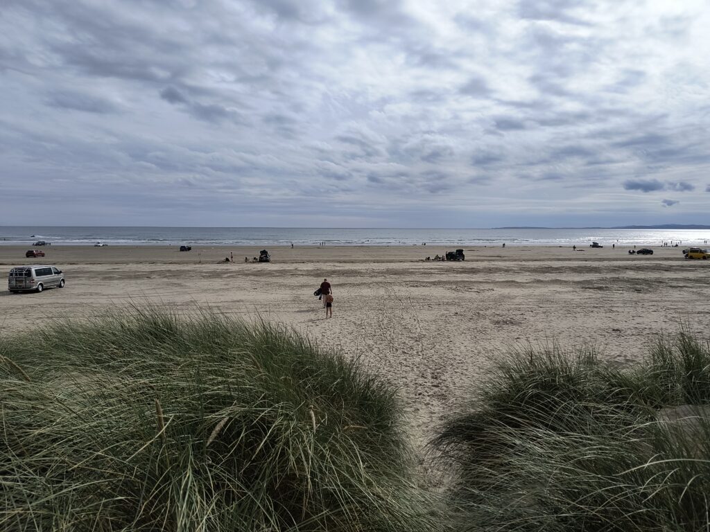 Wir sind im Norden von Wales angekommen! Ein Schwumm im Meer tut gut und macht auch ohne Neopren-Anzug viel Spass. Danach gibt es Menü 1: Pasta mit Tomatensauce.