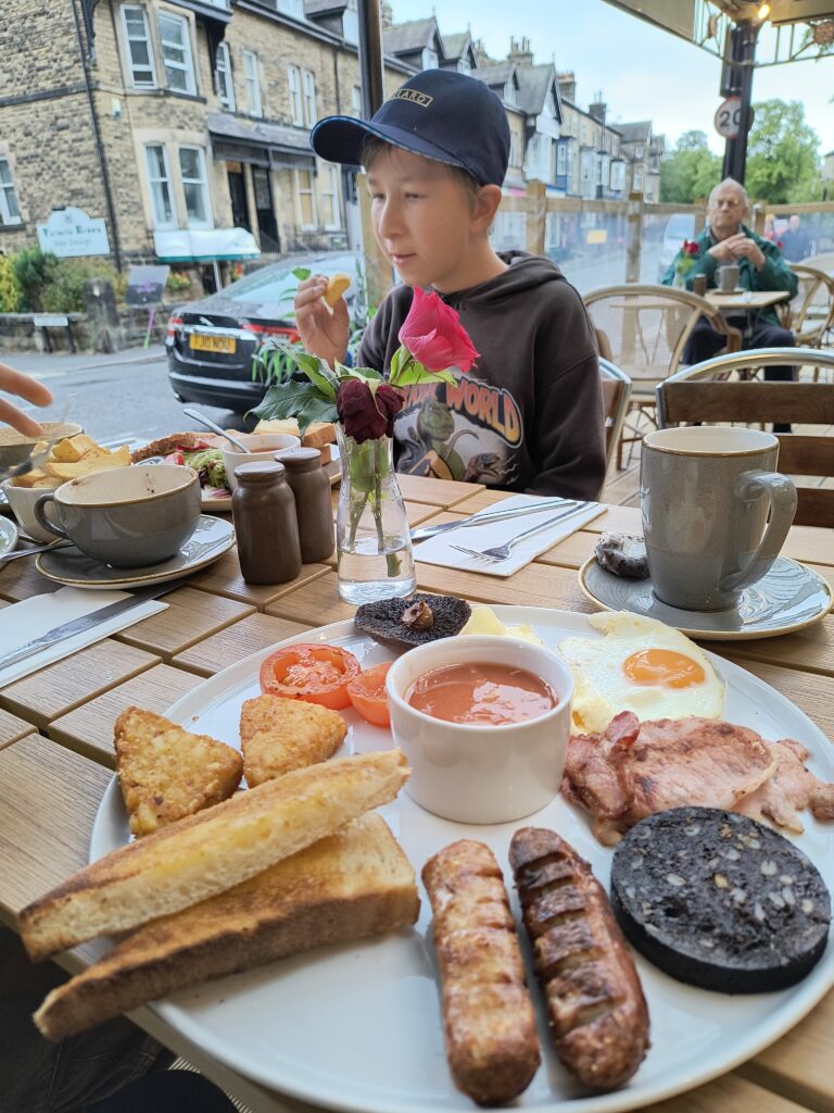 1. Mal England, 1. Mal Wales, 1. Mal englisches Frühstück, 1. Mal indisches Essen… er geniesst es.