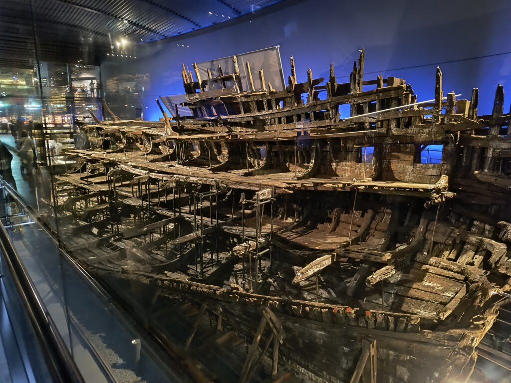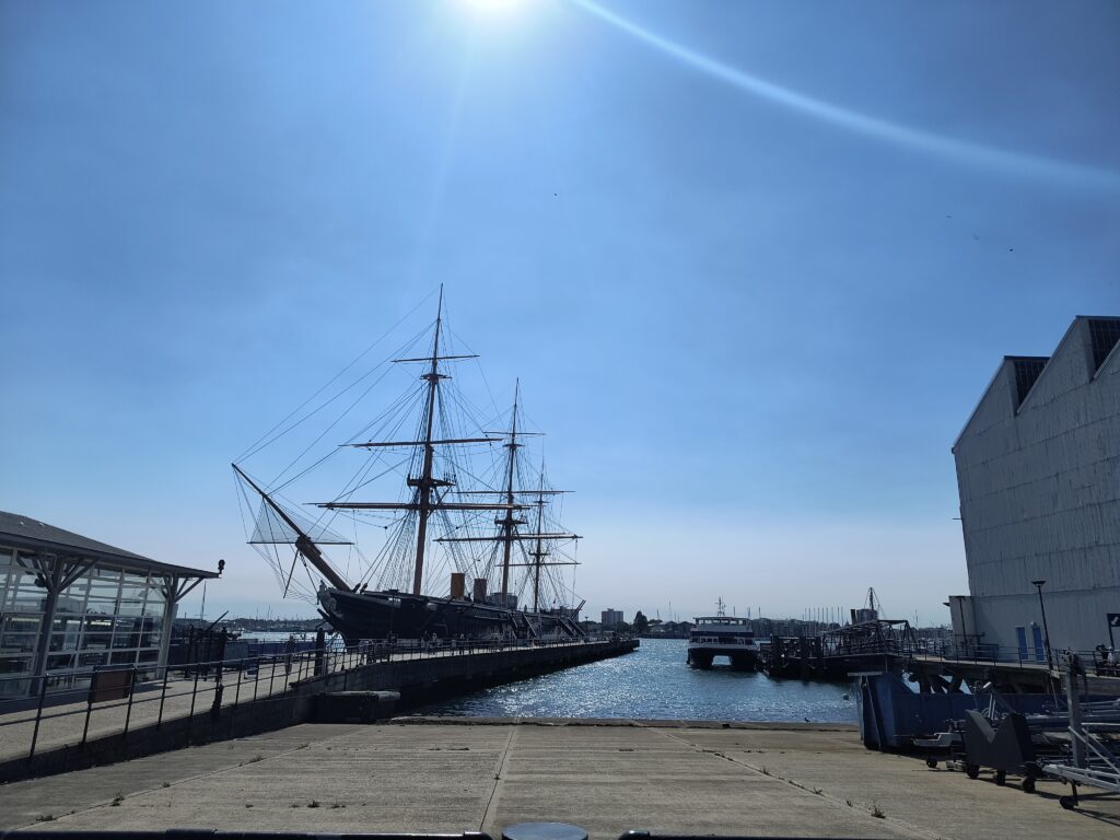 Nach dem Zmorge geht es zum Ferry Port. Von da aus fährt heute Abend unsere Fähre der Brittany Ferrys namens Guillome de Normandie nach Caen. Wir lassen den Camper im Parkhaus und fahren mit dem Taxi zum Hafen der Royal Navy. Dort erwarten uns eine Hafenrundfahrt und Schiffe namens HMS Warrior, HMS Victory und die 500 Jahre alte Mary Rose (das Flaggschiff von Henry VIII). Beeindruckend!
