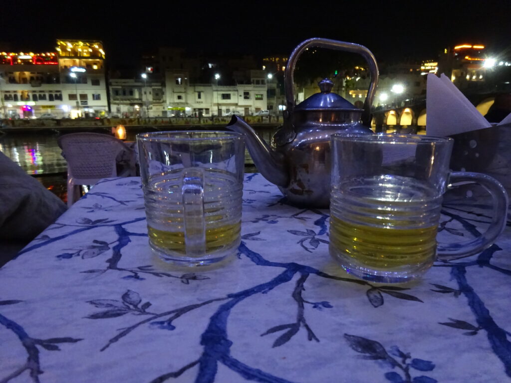 Auf der Terrasse essen wir ein Indian Massala Sandwich – sogar mit Pommes! Danach gehts runter ins Getümmel der Altstadt und auf ein Bier – oh, entschuldigung – ein Special Tea in einem kleinen Restaurant am Wasser.