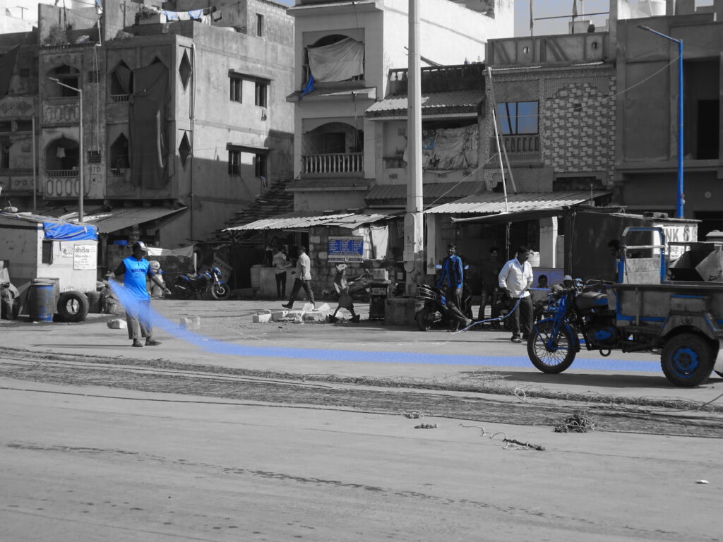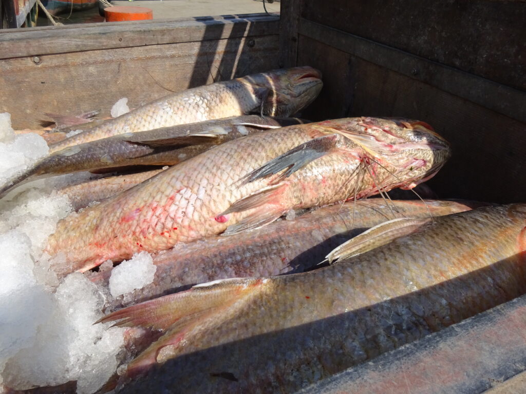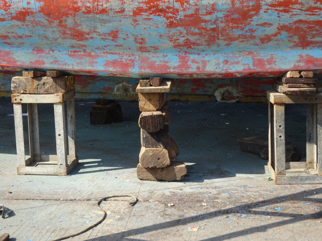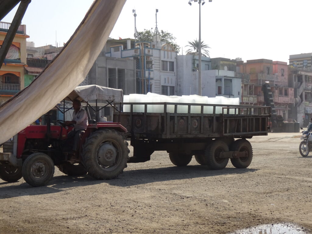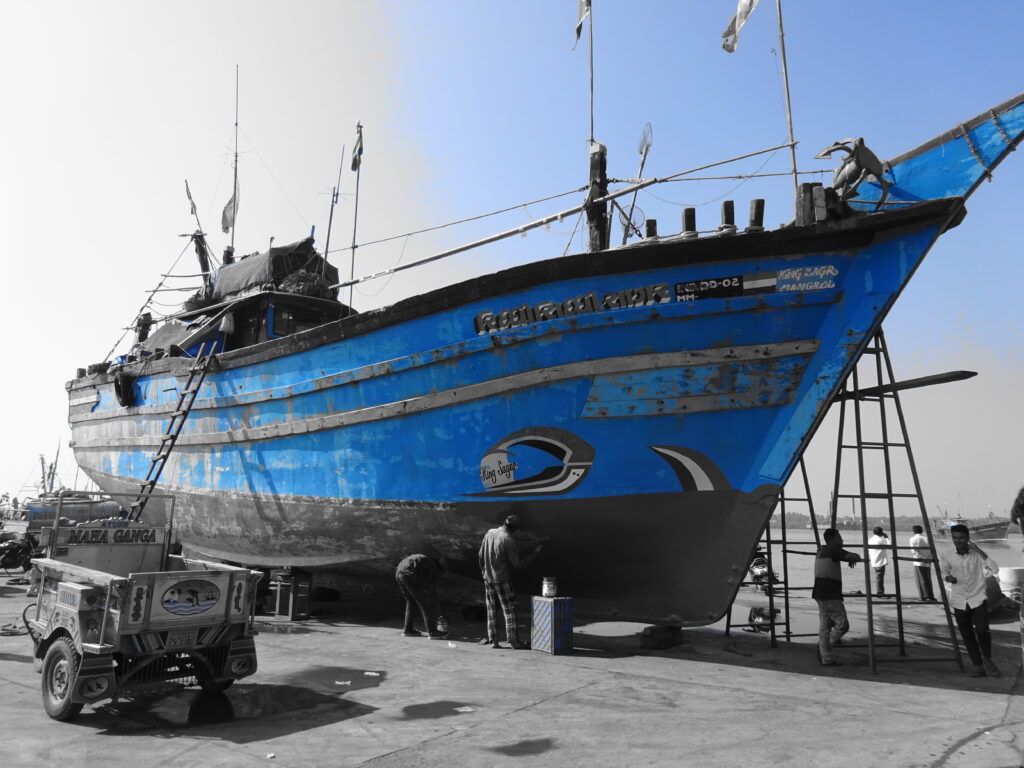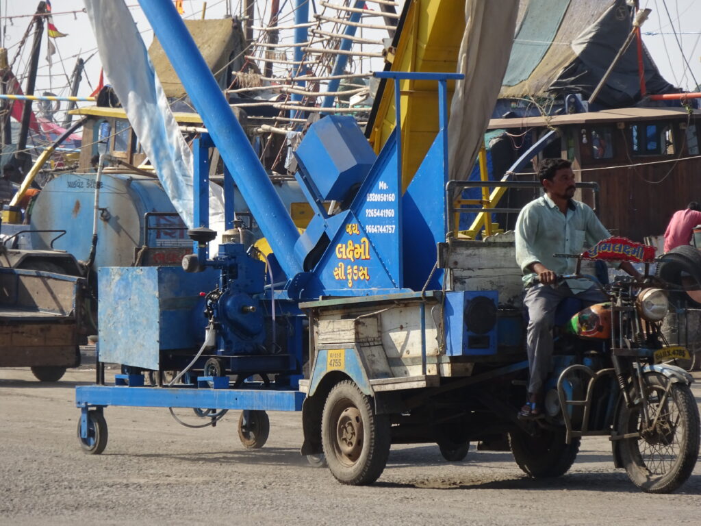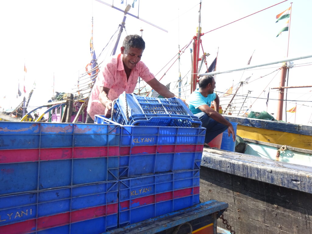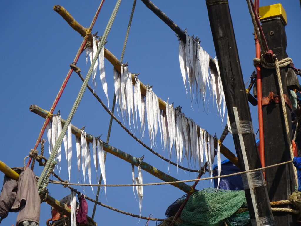 In Vanakbara begrüsst uns ein intensiver Fischduft. Dieser ist jedoch nicht unangenehm, sondern nach Meer riechend frisch. Auf dem Hafen herrscht Hochbetrieb. Es werden Karren voll Fisch transportiert, Lastwagen mit ganzen Eisblöcken herumgefahren und Schiffe neu angestrichen. Die meisten Schiffe sind noch aus Holz – andere aus Fiberglas. Alles ist bunt dekoriert und es wehen hunderte von farbigen Flaggen. Wir kommen aus dem Staunen nicht mehr heraus und könnten stundenlang zuschauen. Nach einem Chai machen wir uns gemütlich auf den Rückweg nach Diu. Wir sind zum Mittagessen bei Ina und Kailash eingeladen.